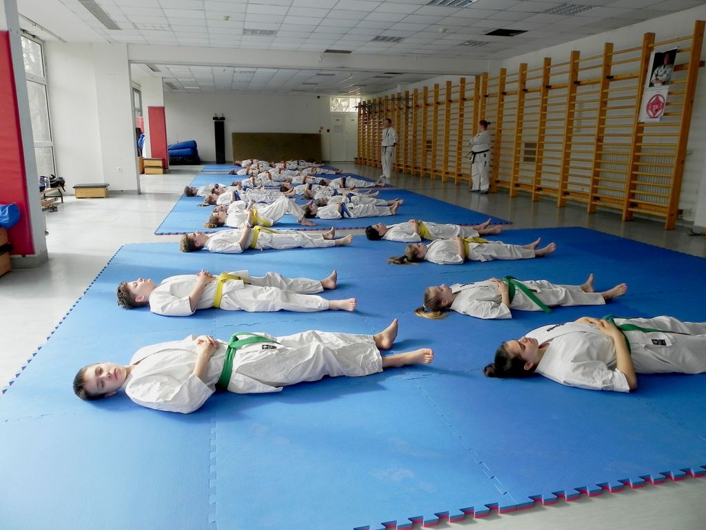 Véghajrába érkezett Diákolimpiai felkészülésünk, hiszen 1 hét múlva 37 újbudai versenyzővel fogunk részt venni a diákolimpia elődöntőn Várpalotán. A hétköznapi edzéseket ismét egy hétvégi 1 napos táborral egészítettük ki, ahol a korábban már megszokott struktúra szerint zajlottak le az edzések: a délelőtti formagyakorlat edzést ebéd, majd egy megbeszélés követte. A testpajzsos pont küzdelemmel párhuzamosan a zsákedzés is megkezdődött, majd a tábort a full-kontakt edzés zárta. Az újbudai csapaton túl a klub Ferenc körúti és Tatabányai csapata is részt vett a táborban, valamint Sensei Kovács Balázs csapata is becsatlakozott a pontküzdelmi edzésre, ahol több tatamin verseny küzdelmekre került sor.