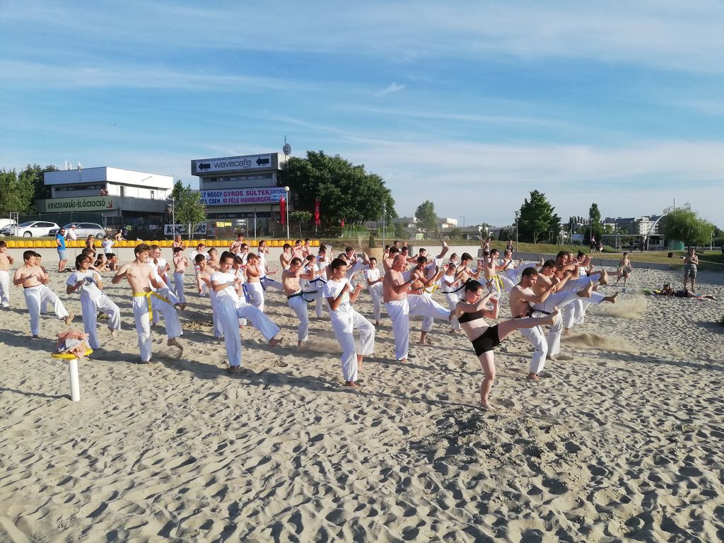 Kedden délután érkezett Shihan Dr. Bogdán Olivér, aki szerdán tartalmas kata és bunkai edzést tartott számunkra. A szerda délutáni küzdőedzést a parton, majd a vízben folytattuk. Szerda délutántól tartott velünk Shihan Dr. Csizmadia Zsolt, aki a magas öves formagyakorlatok rejtelmeibe vezette be a tanítványokat. Pénteken délelőtt övvizsgával zártuk a tábor szakmai programját, ahol számos tanítvány szerezte meg az új övfokozatot, köztük többen is övszínt váltottak. Végül délután csapatépítő programként sárkányhajózni mentünk a Velencei-tóra.