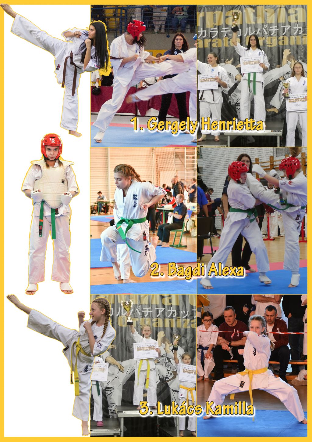 1. Gergely Henrietta: Heni U16-os válogatott versenyzőnk, év elején küzdelemben megnyerte a lengyelországi Carpathia Cup-ot, majd a Diákolimpia elődöntőt, ahol formagyakorlatban pontegyenlőségben az 1. helyezettel, 2. lett. A tavaszi korlátozások idején és azóta is a legaktívabb tanítványunk. Ősszel Utánpótlás Magyar Bajnoki 3. lett, majd megnyerte a Hinomoto Kupát. Emellett formagyakorlatban a nemzetközi színtéren is értékes győzelmeket szerzett.