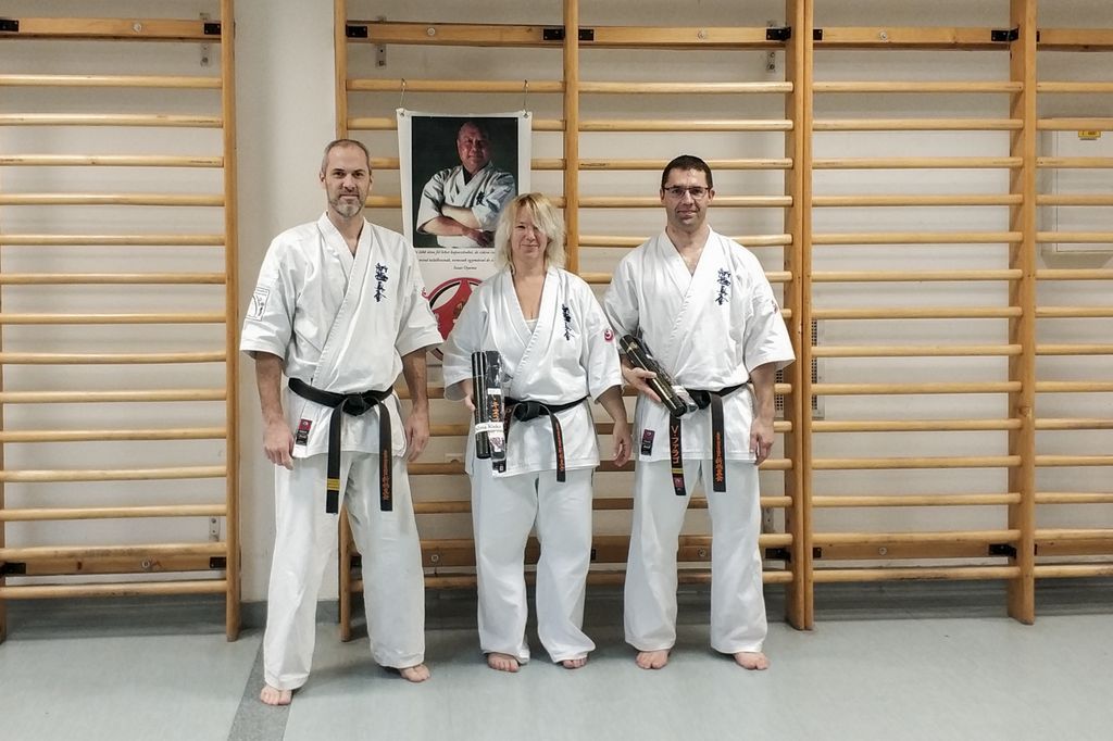 Nyáron a Shinkyokushin Harcművész Szövetség edzőtáborában egyesületünkből sikeres vizsgát tett 3. dan fokozatra Kiskó Pálma és Faragó Viktor. Egyedi hímzett öveik és dan diplomáik megérkeztek Japánból, amiket kedden adtunk át a csapat előtt két edzés között, majd egy vacsora keretein belül koccintottunk a sikerükre.